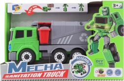 Jednoduchý transformačný mechanizmus premení smetiarske auto na akčného robota a späť – ideálne pre dynamickú hru.