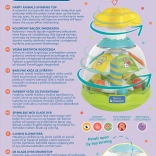 Veselý a farebný káčak so zvieratkami je plný malých guličiek, ktoré sa pri točení roztočia a poskakujú. Pri otáčaní sa navyše otvárajú vnútorné lopatky. Hračka podporuje jemnú motoriku, koordináciu oko–ruka a myslenie príčina–následok.