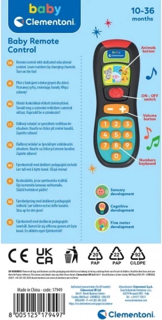 Tento detský ovládač napodobňuje skutočné diaľkové ovládanie a zmení každodennú hru na objavovanie. Dieťa si pomocou tlačidiel precvičí prvé čísla, spozná zvieratá a ich zvuky a zároveň rozvíja jemnú motoriku. Veselé melódie a svetelné efekty motivujú k ďalšiemu skúmaniu.