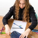 Textilný peračník s modrým mandalovým vzorom pridáva estetický prvok, ktorý sa hodí pre štýlových študentov.