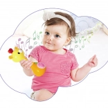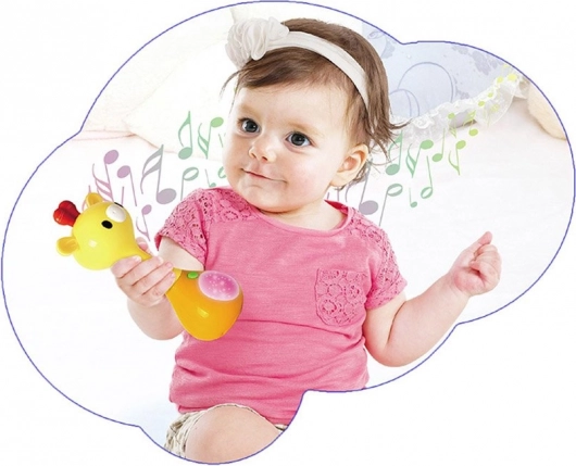 Interaktívna hrkálka prináša viac než len klasické zašušťanie – ponúkne deťom poslech veselých melódií, krátkych zvukov (vtáčiky, detský smiech, pružinka) aj tónové hranie pri zatrasení. Farebne svietiace bruško zvieratka priťahuje pozornosť a motivuje k opakovanej hre.