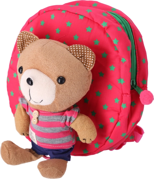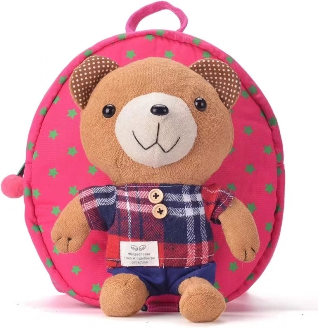 Detský batôžtek s bezpečnostným vodítkom medvedík – ružový