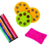 Tri vymeniteľné disky s celkovo 21 obrázkami deťom uľahčia prvé kroky v kreslení a podporia ich fantáziu.