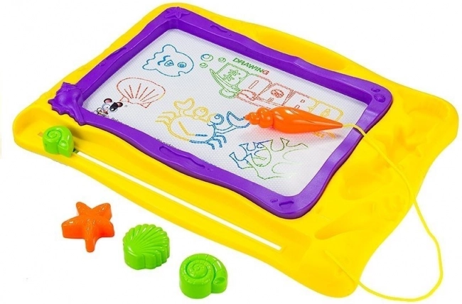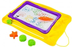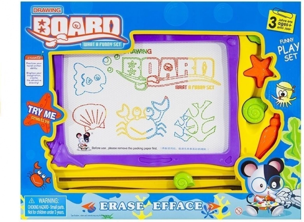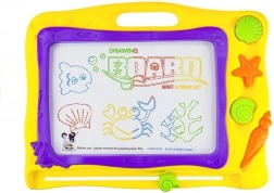 Farebné pozadie rozdelené do 8 častí dodá každému výtvoru živosť a podporuje detskú predstavivosť. Morský dizajn s mušľami a hviezdicami poteší malých milovníkov oceánu. Kvalitné spracovanie zabezpečuje dlhú životnosť a bezpečné používanie – kreslite iba priloženým magnetickým perom.