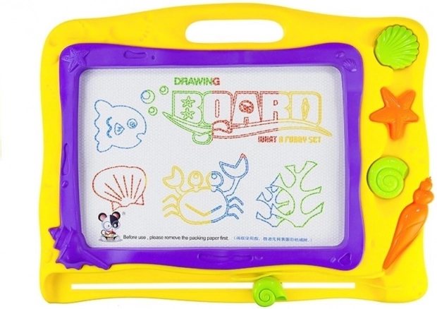 Magnetická tabuľka je skvelá voľba na kreslenie bez papiera a bez neporiadku. Pod obrazovkou sa nachádzajú kovové piliny, ktoré sa pri dotyku magnetického stylusu skladajú do obrázkov. Na ich vymazanie stačí ľahko posunúť spodný mazací posúvač a plocha je pripravená na ďalšiu tvorbu.