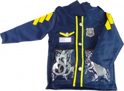 .- Policajnú uniformu na suchý zips s imitáciou gombíkov a nápisom POLICIA na chrbte,