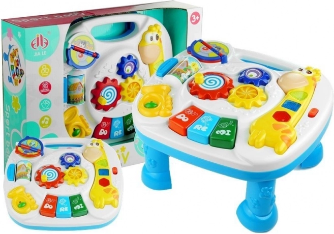 Stolík poskytuje rôzne aktivity, ktoré zaujmú dieťa na dlhý čas. Obsahuje klavír, žirafu a kolieska pre rozvoj motorických zručností.