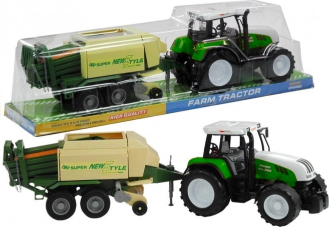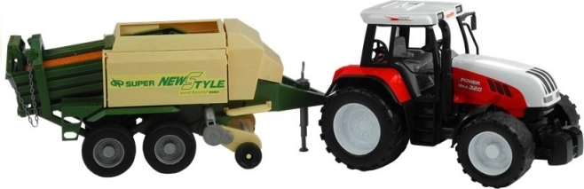 Príves zahŕňa pohyblivé časti ako vysúvaciu oporu, otočný zberací podávací mechanizmus a otvárateľné bočné a zadné klapky. Tento vzrušujúci traktor je dostupný v červenej a zelenej farbe, čo pridáva na autentickosti a zábave.