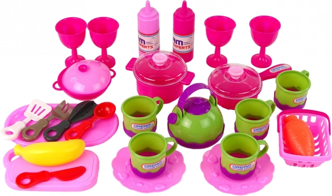 Tento ružový kuchynský set je perfektným doplnkom pre malé pomocníčky v kuchyni. Výrazne rozvíja predstavivosť a manuálnu zručnosť detí, zatiaľ čo prináša radosť z hodín zábavy. Štýlový dizajn a cukríkovo ružová farba lákajú každú malú kuchárku k nápaditému hraniu.