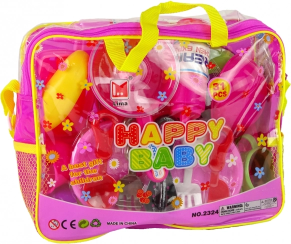 Rozmery balenia: 26 cm x 20 cm x 8 cm. Celý set je vyrobený z ekologicky priateľského a deťom bezpečného plastu, ktorý verne imituje skutočný riad a kuchynské náčinie.
