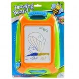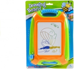 Predstavujeme vám magnetickú kresliacu tabuľu, ktorá je vybavená kvalitným veľkým displejom rozdeleným na štyri farebné sekcie: zelenú, žltú, modrú a hnedú. Táto inovácia umožňuje tvorbu originálnych, viacfarebných obrázkov. Princíp fungovania tabule je jednoduchý - pod povrchom displeja sú železné piliny, ktoré sa špeciálnym magnetickým perom pretvárajú do tvarov, ktoré dieťa vytvorí.