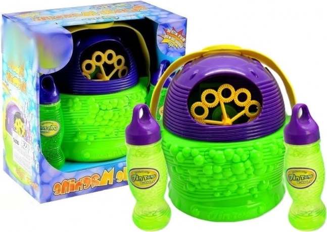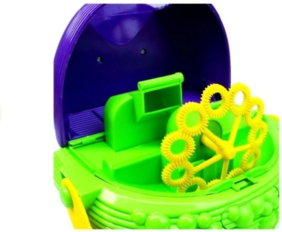 Pre zaistenie dlhodobej zábavy odporúčame pravidelne čistiť stroj: otvorte veko, vylejte zvyšky tekutiny a utrite vnútro stroja čistou vlhkou handričkou. Stroj je vyrobený z certifikovaných, trvácnych materiálov bez ostrých hrán a má certifikát CE, čo zaisťuje bezpečnosť pre deti od 3 rokov. Potrebuje 6 batérií AA 1,5 V, ktoré nie sú súčasťou balenia.