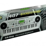 Objavte detské elektronické klávesy so 54 klávesami, podsvieteným LCD a mikrofónom – ideálne na prvé hudobné krôčiky. Ponúkajú 100 tónov, 100 rytmov, 10 demo skladieb, 2 výučbové režimy, funkcie nahrávanie a prehrávanie a dva stereo reproduktory. Napájanie adaptérom 230 V alebo 6× AA; vhodné pre deti od 3 rokov.