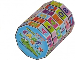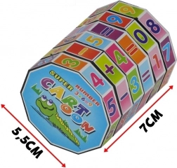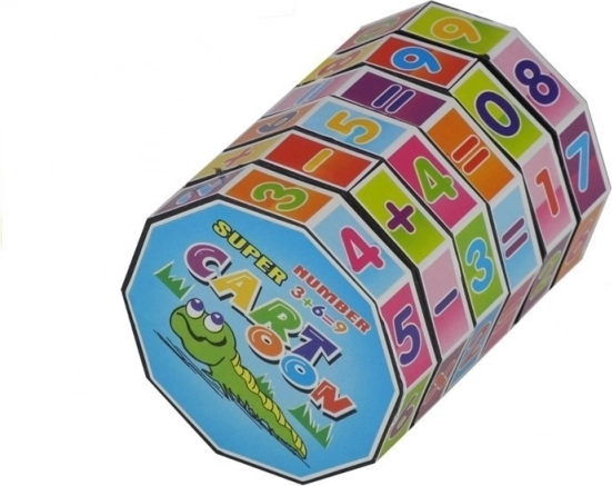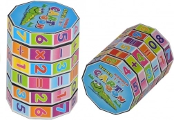 Tento šikovný a zábavný hlavolam v tvare valca priťahuje pozornosť pestrými farbami a jednoduchým princípom: otáčajte jednotlivé prstence s číslami a matematickými symbolmi a skladajte správne príklady. Deti sa tak prirodzene učia a upevňujú počtové zručnosti, rozvíjajú logické myslenie, sústredenie aj jemnú motoriku – skrátka učenie hrou.