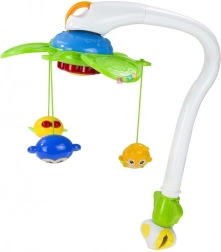 Upokojte bábätko a podporte jeho zmyslový rozvoj s týmto farebným kolotočom nad postieľku 2v1. Naťahovacia hracia skrinka bez batérií prehráva príjemné melódie, zatiaľ čo rotujúce zvieratká (mašlička, včielka, medvedík/veverička) priťahujú pozornosť a rozvíjajú zrakovú koordináciu. Vďaka univerzálnemu uchyteniu ho ľahko pripevníte k väčšine postieľok a odnímateľný panel možno využiť aj na kočíku.