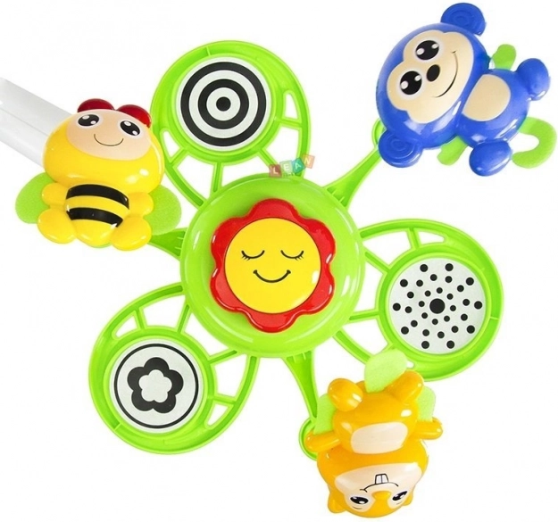 Veselé zvieratká v živých farbách priťahujú detskú pozornosť, podporujú sledovanie pohybu a rozvoj koordinácie oko–ruka.