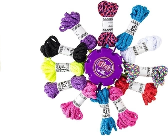 Súčasťou sady je kruhové zariadenie, ktoré uľahčuje pletenie náramkov a pomáha vytvárať zložité vzory.