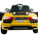 Elektrické autíčko Audi R8 Spyder je určené pre deti a ponúka jedinečný zážitok z jazdy. Vzhľad autíčka verne kopíruje legendárny športový dizajn Audi R8 Spyder, čo zahŕňa štýlový žltý lak, autentické svetlomety s LED diódami a výraznú prednú masku.