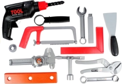 - 31 dielov vrátane vŕtačky, pílky, kladivka, kľúčov a skrutkovačov