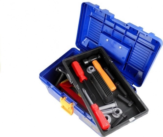 - kufrík, vŕtačka, kladivko, ručná píla, francúzsky kľúč, očkový kľúč, nástrčný kľúč, plochý kľúč, skrutkovač krížový, skrutkovač plochý, skrutky a matice, posuvné meradlo, špachtľa, pilník, vodováha, uhlovníky, spojky s otvormi
