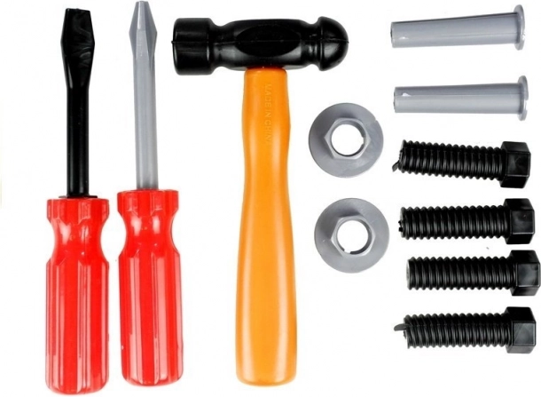 Praktická detská sada náradia v pevnom kufríku s uchopiteľným madlom prináša až 31 dielov na bezpečné a kreatívne hranie. Malí kutilovia si užijú vŕtačku, pílu, kladivko, skrutkovače a ďalšie príslušenstvo, ktoré podporuje jemnú motoriku, logické myslenie a fantáziu. Všetko náradie sa zmestí do kufríka, takže sa nič nestratí a sada je ideálna aj na cesty.