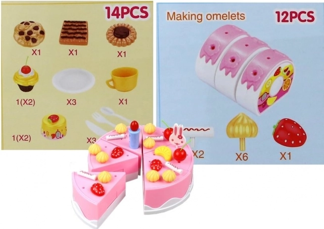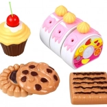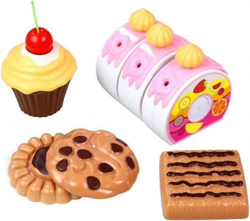 Cupcake, sušienky a kúsok rolády doplnia každý detský čajový večierok. Diely sú farebné a lákavé pre fantazijnú hru na cukráreň.