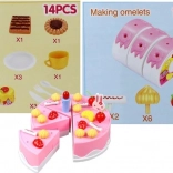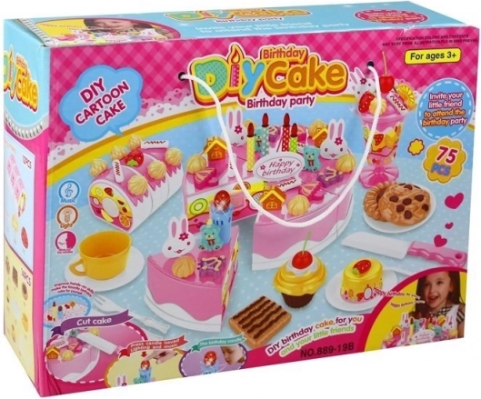 Súčasťou je celkom 75 dielov – okrem torty aj zákusky, sušienky, roláda, tanieriky, príbory, sviečky a množstvo ozdôb, ktoré možno do torty jednoducho zasunúť. Deti si precvičia jemnú motoriku, spoluprácu aj komunikáciu pri spoločnej hre na cukráreň či narodeninovú oslavu.