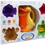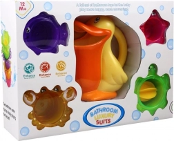 Kúpacej hračka, ktorá poteší deti aj rodičov. Pelikán s praktickou rukoväťou naberá a vylieva vodu, zatiaľ čo štyri farebné zvieracie kelímky možno používať na naberanie, prelievanie a vkladanie do seba. Vďaka bezpečnému plastu, hladkým hranám a hravému dizajnu je sada skvelá na každodenné vodné radovánky.