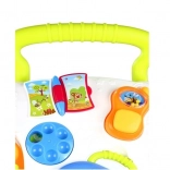 Klavírik s melódiami, otočné kolieska, knižočka a telefón–hrkálka podporujú zmyslový rozvoj aj učenie čísel a tvarov.
