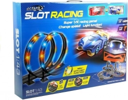 Závodný slotový autodráhový set s LED slučkami 1:43, 2 autá