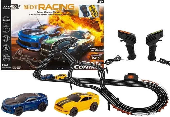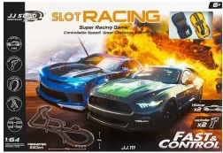 Postavte si vlastný pretekársky okruh a vyrazte do boja o najrýchlejšie kolo. Slotová dráha ponúka dlhý okruh 530 cm, stabilné vedenie áut vďaka vodiacim lištám a plynulé riadenie rýchlosti pre presné prejazdy zákrutami. Vďaka bohatej zostave dielov ľahko poskladáte trať s rovinkami, klopením, loopingom aj ostrými oblúkmi.