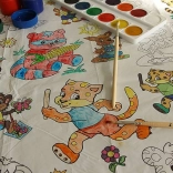 Veľký obrúsok umožňuje viacerým deťom maľovať súčasne a zdieľať tak radosť z tvorby.