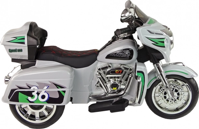 Model vychádza zo štýlu touring motocyklov, takže malým jazdcom ponúkne autentické prvky ako palubný panel, svetlomety a opierku chrbta. Stabilný podvozok a elektrický pohon podporujú plynulú jazdu na rovnom povrchu.