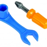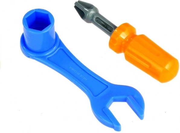 Kľúč a skrutkovač podporujú jemnú motoriku a prichádzajú prirodzene s hračkou.