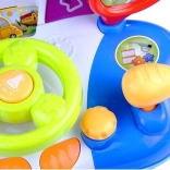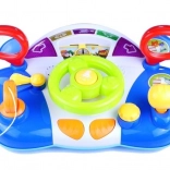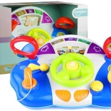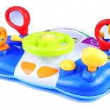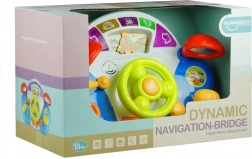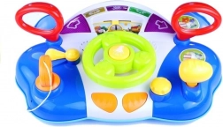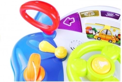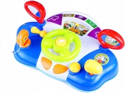Táto interaktívna hračka ponúka množstvo farebných prvkov a zvukov, ktoré prispievajú k rozvoju zručností. Ideálna na rozpoznávanie tvarov a farieb, poskytuje dve úrovne hlasitosti na prispôsobenie rôznym prostrediam a denným dobám. Ergonomický volant sa ľahko drží v malých rukách a obsahuje 7 druhov zvukov, osvetlené ukazovatele a otočné zrkadlá. Deti môžu kľúčom manipulovať v stierači a tlačidlom aktivovať zvuk motora. Pohyb volantu tiež pohýňa autíčko po dráhe.
