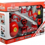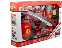 - hasičské auto s výsuvným rebríkom, helma, okuliare, maska, hasiaci prístroj, vysielačka, píla, kliešte, skrutkovač a ďalšie nástroje s nadstavcami