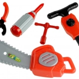 Súčasťou sú tiež pracovné nástroje s vymeniteľnými nadstavcami a detská píla, s ktorými môžu malí kutilovia doťahovať skrutky a prestavovať detaily. Všetko je z ľahkého, odolného a bezpečného plastu, vhodné pre deti od 3 rokov. Set je balený v darčekovej krabici s priezorom a uchom – ideálne ako skvelý darček.