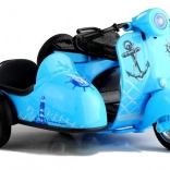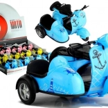 Robustné spracovanie z kovu a kvalitného plastu zaručuje dlhú životnosť aj pri častom hraní. Skúter s postranným vozíkom je osadený otočnými kolesami s gumovým behúňom pre lepšiu priľnavosť a má otočné riadidlá prepojené s predným kolesom pre realistické zatáčanie.