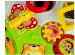 Stabilná opora pre prvé krôčiky a samostatne použiteľný interaktívny panel so svetlami, zvukmi a množstvom aktivít na učenie aj zábavu doma aj na cestách.