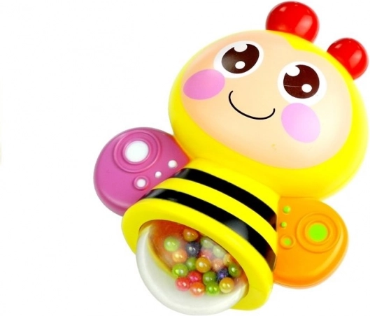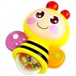 - 3 odnímateľné hrkálky (vtáčik, opička, včielka) s farebnými guľôčkami vo vnútri pre príjemné hrkotanie a samostatnú hru.