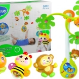 Tri závesné hračky (vtáčik, opička, včielka) možno ľahko odopnúť a používať ako samostatné hrkálky. Vo vnútri sú guľôčky, ktoré pri pohybe príjemne hrkocú.