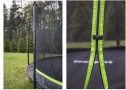 Rám z atestovaných materiálov je odolný proti korózii a poveternostným vplyvom. Trampolínu nie je nutné pri zmene počasia zakaždým skladať.