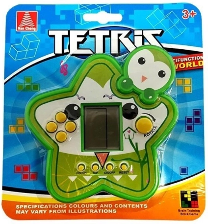 Hra s elektronickou zelenou konštrukciou je veľmi ľahká a kompaktná, čo z nej robí ideálnu vreckovú verziu, ktorú môžete mať všade so sebou. Skladá sa z displeja a žltých tlačidiel, ktoré ovládajú funkcie hry. Môžete hru zapnúť a vypnúť, vypnúť zvuky alebo resetovať hraciu plochu, aby ste mohli začať znova skladať bloky. Ostatné tlačidlá slúžia na navigáciu počas hry a otáčanie blokov. Táto vrecková, zelená verzia elektronickej hry spríjemní čas deťom aj dospelým. Skvele sa hodí na oddych medzi hodinami, alebo napríklad v autobuse či doma počas relaxu.