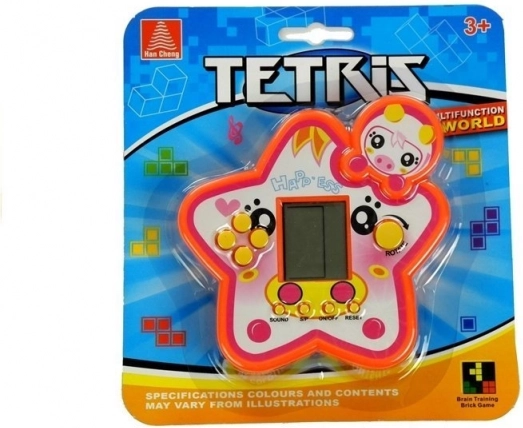 Elektronická hra v oranžovom púzdre je veľmi ľahká a vďaka kompaktným rozmerom je ideálna na prenášanie. Obsahuje displej a žlté tlačidlá na ovládanie herných funkcií. Tlačidlá umožňujú spustiť a vypnúť hru, stlmiť zvuky a resetovať ihrisko pre nový začiatok. Ďalšie tlačidlá slúžia na navigáciu počas hry a otáčanie blokov. Vrecková verzia elektronickej hry je ideálnym spoločníkom pre voľné chvíle, či už ste v autobuse, doma, alebo počas prestávky medzi povinnosťami.