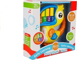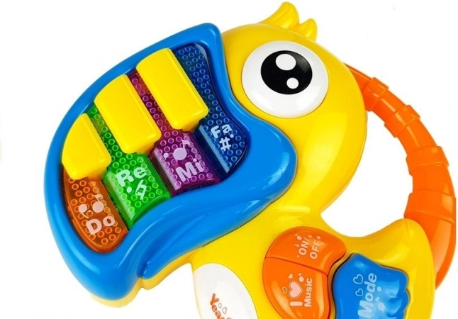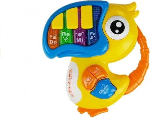 Interaktívne piano v tvare farebného vtáčika je vybavené muzikálnymi klávesami 'Do', 'Re', 'Mi', ktoré každé dieťa uchvátia svojou farebnosťou a veselou konštrukciou. Zvukové a svetelné efekty pomáhajú rozvíjať zmysly a predstavivosť dieťaťa: