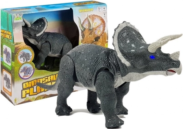 Zoznámte sa s dokonalou replikou veľkého dinosaura Triceratops, ktorý žil pred 125–100 miliónmi rokmi. Tento model je navrhnutý s výraznou lebkou a masívnou svalnatou konštrukciou. Poháňaný tromi batériami "AA" 1,5 V, po zapnutí dinosaurus začne chodiť, revať a pohybovať hlavou, čím prináša realistický zážitok vďaka svetelným efektom, ako je blikajúce oči.