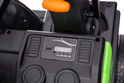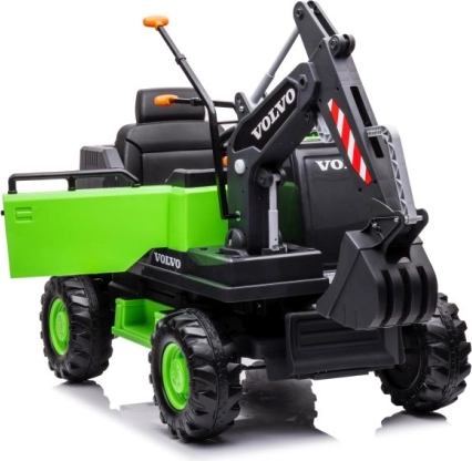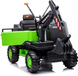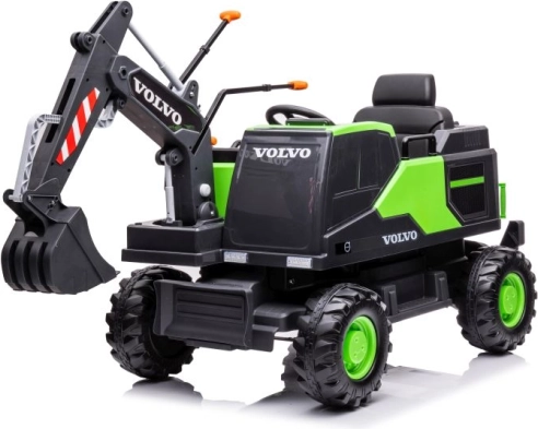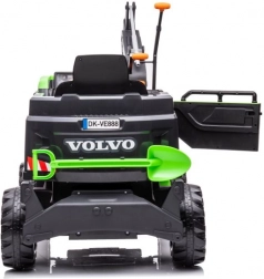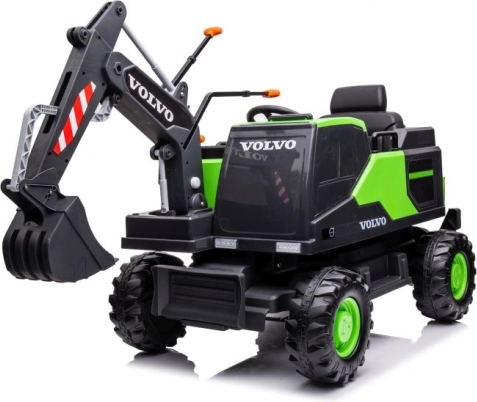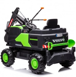 Tento bager pripomína miniaturizovanú verziu stavebného vozidla Volvo so zeleno-čiernym dizajnom a detailným spracovaním.