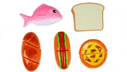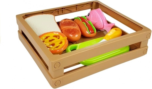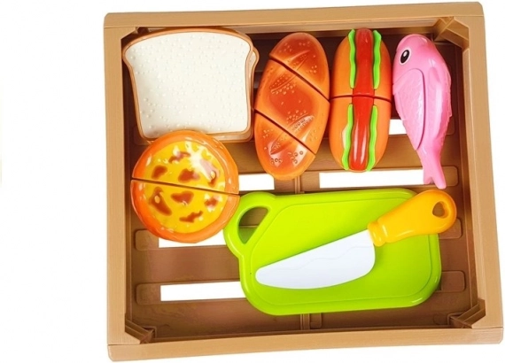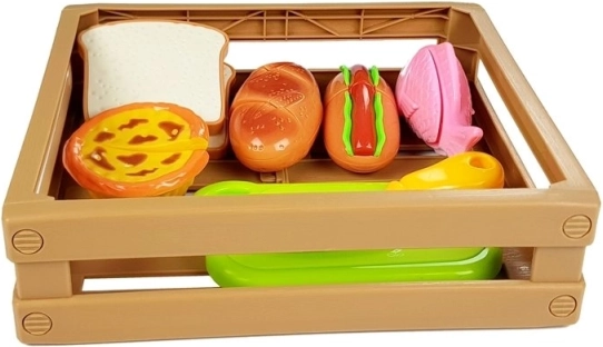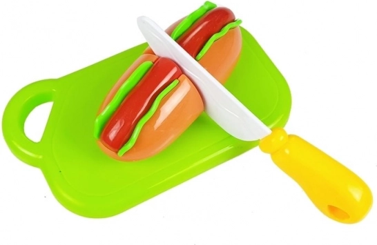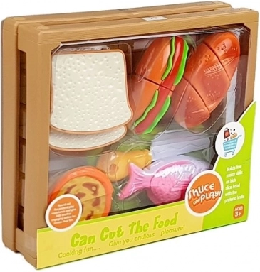 Objavte zábavný svet varenia s detským setom potravín, kde každý kúsok drží na suchý zips. Deti môžu pripraviť hot dog, naservírovať rybu, nakrájať pečivo alebo si „upiecť“ cupcake. Bezpečný plastový nôž a doska umožňujú realistické, ale úplne bezpečné krájanie.