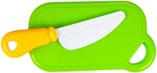 Bezpečný plastový nôž a doska umožňujú napodobniť skutočné varenie bez rizika poranenia. Ideálne na prvé kuchárske pokusy.