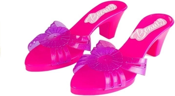 Ľahké plastové šľapky s kvetinovou ozdobou dodajú každej hre šmrnc a podporia rolové hranie princezien.